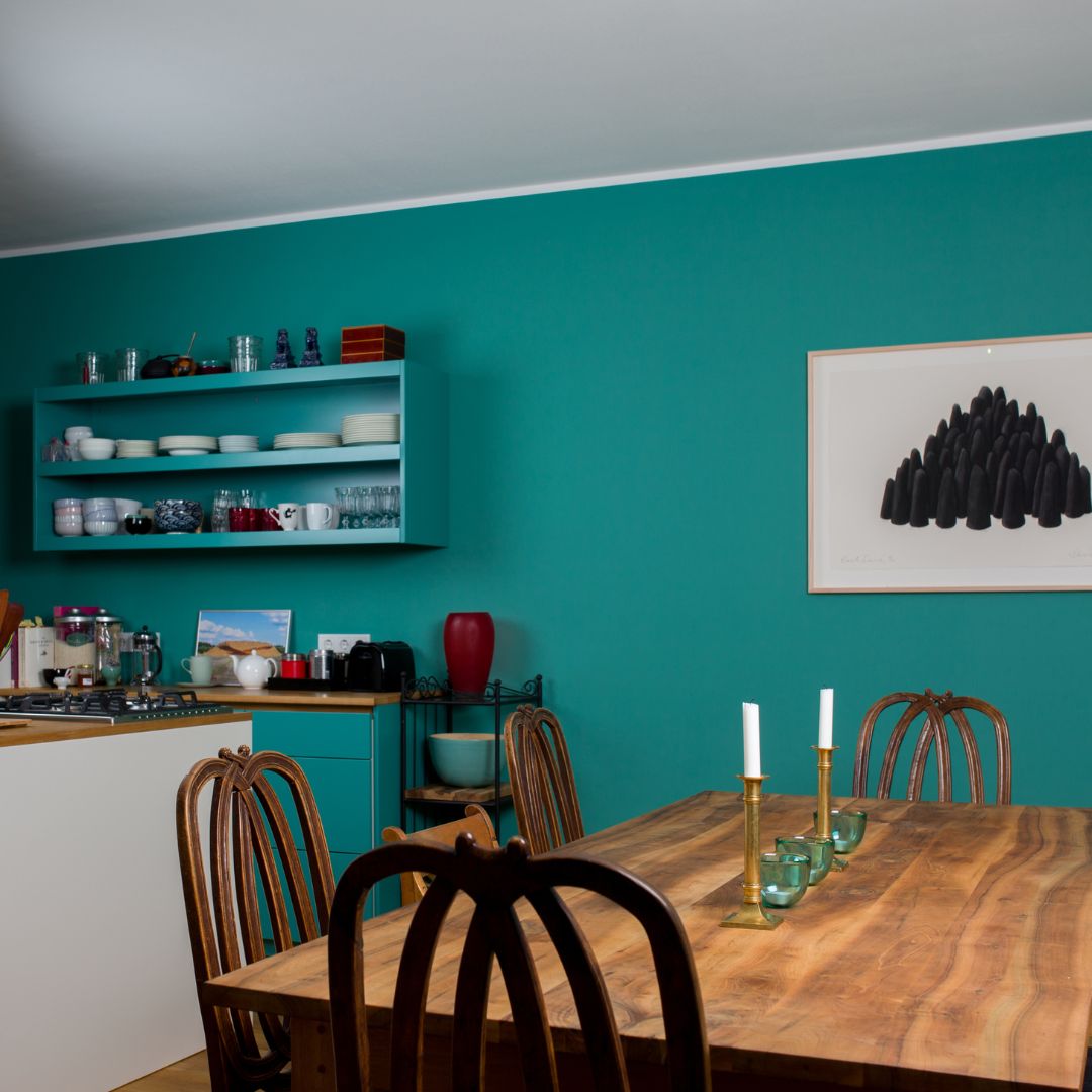 Gerade Wandregale profitieren besonders davon: Wird das Regal in Wandfarbe gestrichen, kommen Bücher und Dekoartikel besser zur Geltung und der Gesamteindruck wirkt ruhiger.