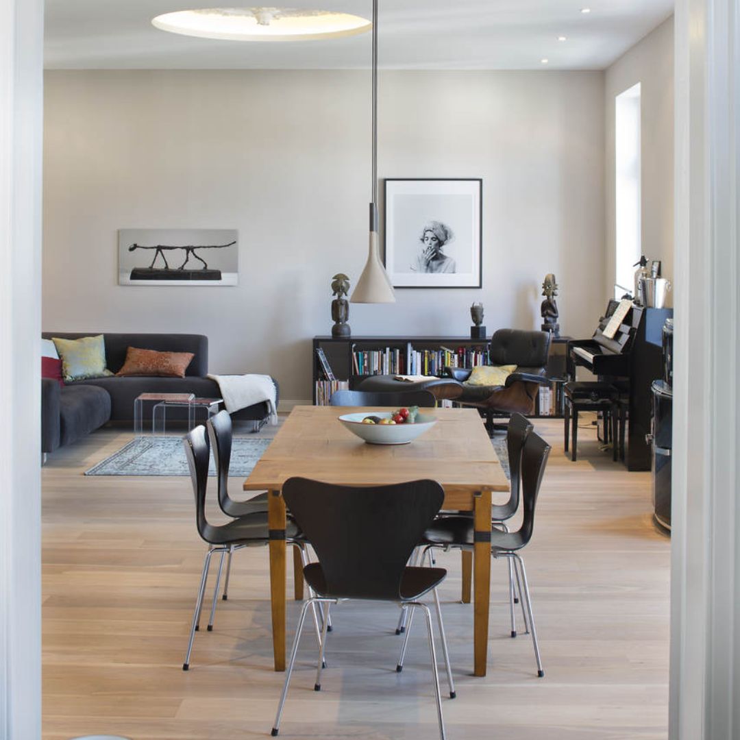 Gestalten Sie Ihre Räume so, dass der Blick auf das Wesentliche gelenkt wird – ein schönes Kunstwerk, der Esstisch oder ein gemütliches Sofa. Elemente wie auffällige Heizkörper, Einbauschränke oder Wandregale können dabei störend wirken. Streichen Sie diese im Farbton der Wand, um sie optisch zurückzunehmen. So verschmelzen sie mit dem Raum und lenken nicht mehr ab.